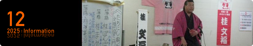 ●今年もお世話になりありがとうございます。1年たつのは早いでんなぁ〜。師走ですから一応師匠の私も昔は忙しく走りまわったものですが…。近頃はトホホ〜、まぁ相変わらずいろんなグループの忘年会(飲み会)等は忙しいですが…。